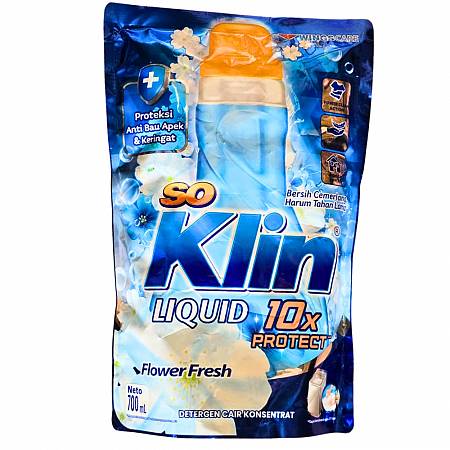 SO KLIN LIQUID DETERJEN CAIR (BIRU) FLOWER FRESH 10x PROTECT (700ml x6pcs)